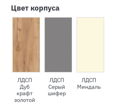 Цвет корпуса: Дуб крафт золотой, Серый шифер, Миндаль.