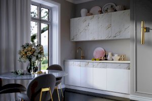 Модульная кухня Оливия Мрамор золото/Белый глянец холодный (Миф)