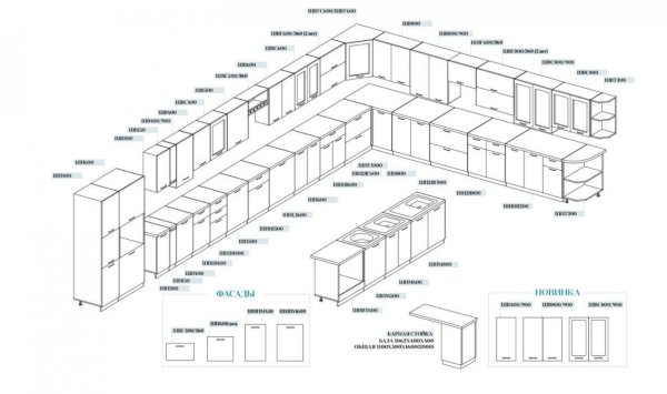 Высота верхних шкафов: 720 мм/900 мм