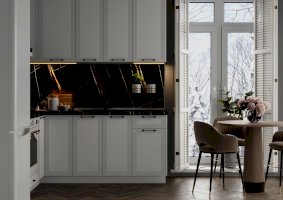 К данной коллекции рекомендуем отдельную обеденную группу из стола и стульев, либо барное решение со столом-стойкой и высокими барными табуретами. Обеденная зона может служить вам, в том числе, как рабочее место.