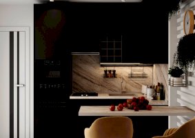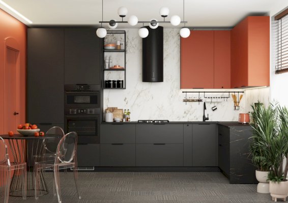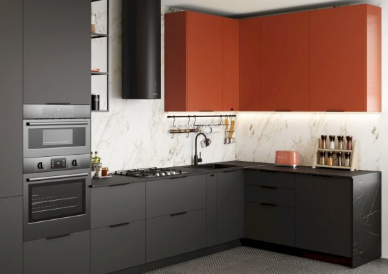 • В верхних шкафах используется скрытый крепёж. Это делает кухню максимально эстетичной.