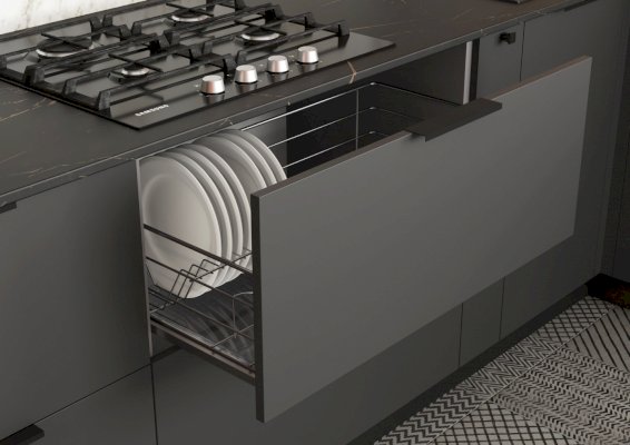 • Для шкафа с сушкой, используется технология двойного открывания фасада , за счёт чего расставлять посуду гораздо удобнее.